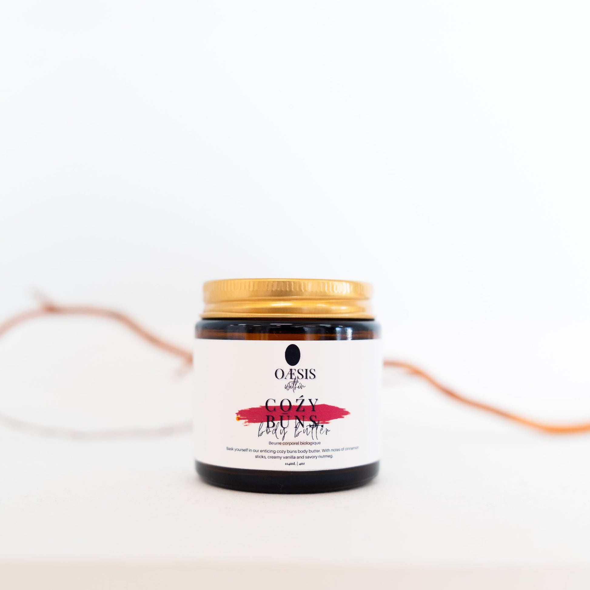 Indulge in our delicious COŹY BŪNS Body Butter! Soothe dry, cracked skin while you enjoy the delicious notes of nutmeg and Chai, the cozy aroma of cinnamon, and a velvety-smooth vanilla finish.